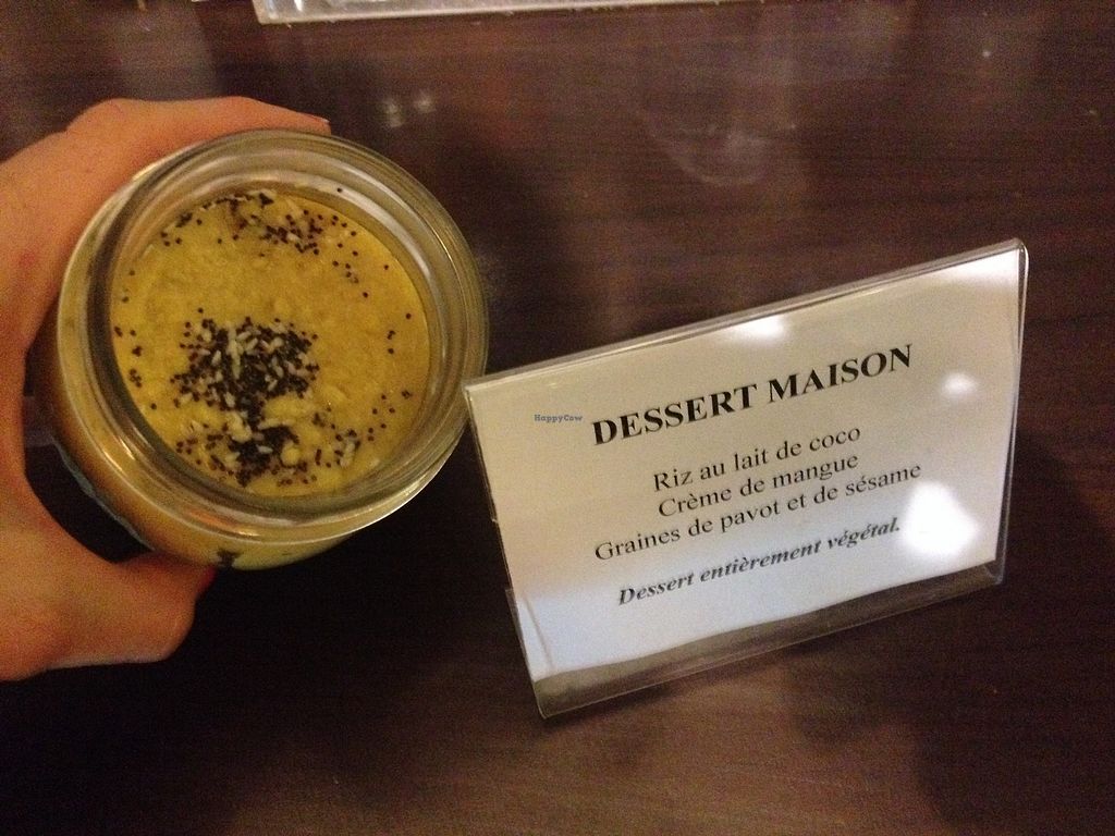 Serves meat, vegan options available. Inside bookshop Raconte-moi la Terre serving coffee in the morning, then lunch and snacks. Reported having vegan tartine and pastries; salad and soup are sometimes vegan. Has soymilk for drinks. Removed July 2023: Limited vegan options.