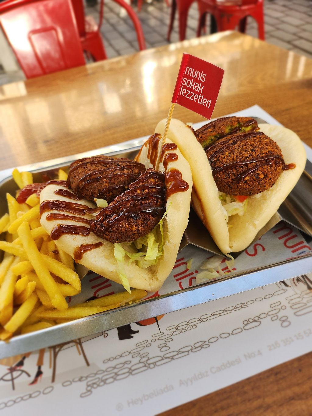vegan bao, with fries on the side