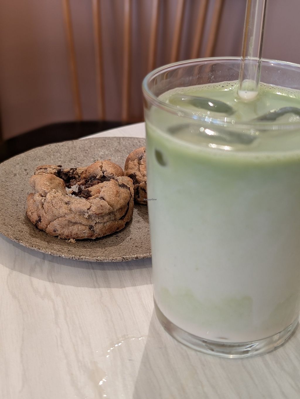 J'ai pris un matcha latte (lait végétal) et un blondie au miso, c'était vraiment très bon