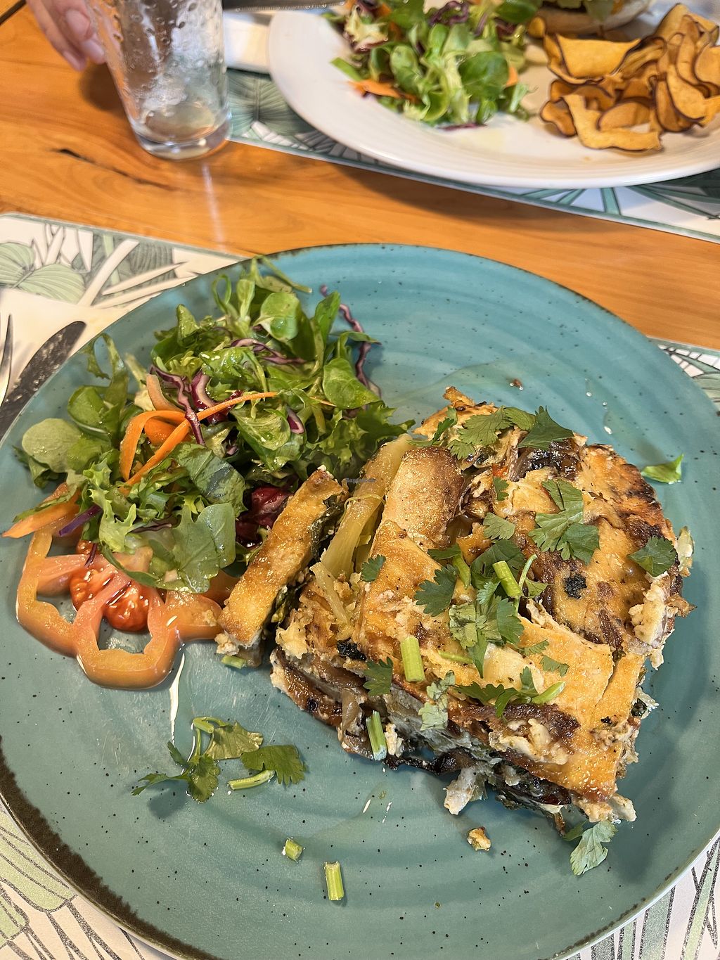 Cosy restaurant with outdoor seating in a traditional alleyway. The patrons are super nice, taking games for the kid at the next table and offering books to read. The food is exceptional. I had the 5 bean chilli paired with a vegan rosé wine and it was delicious.