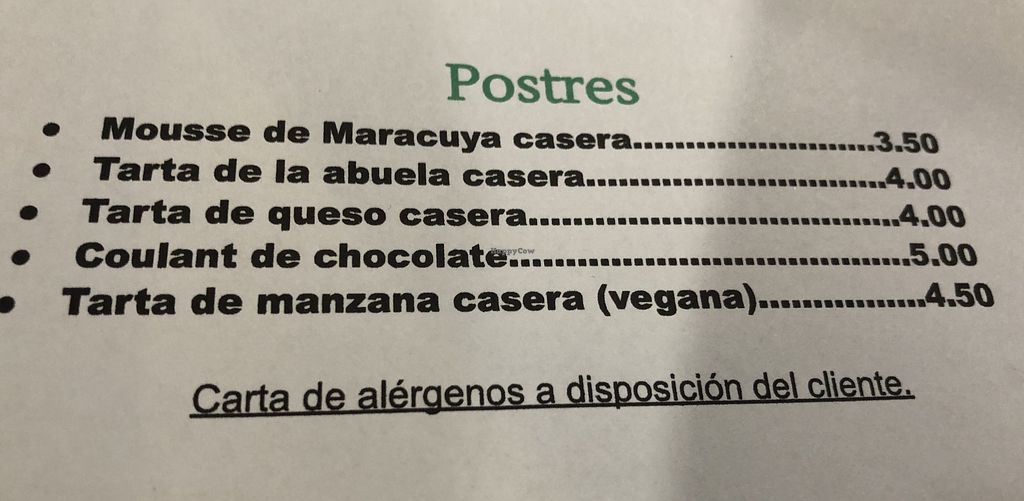 Varias opciones veganas incluso un postre. Probamos el seitán al oporto, estaba muy bueno! Y la salsa de las bravas es vegana (lleva pimiento, cebolla, ajo y aceite). Nos quedó pendiente probar el resto, todo muy económico.