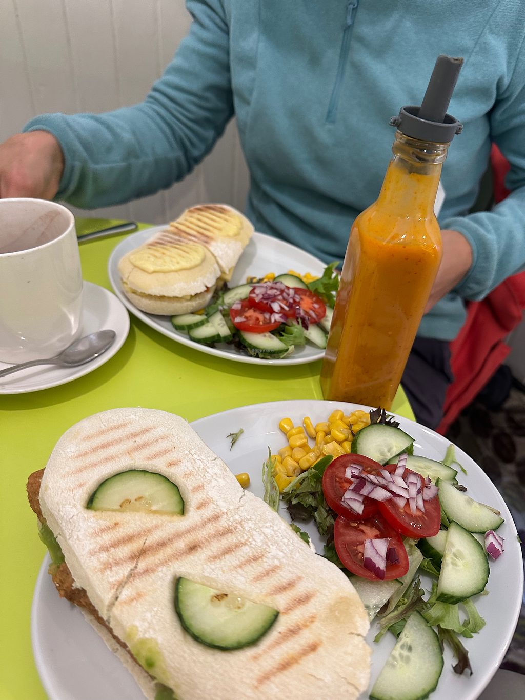 Mushy peas, pesto and sausage panini Cheese, pesto and grilled pepper…