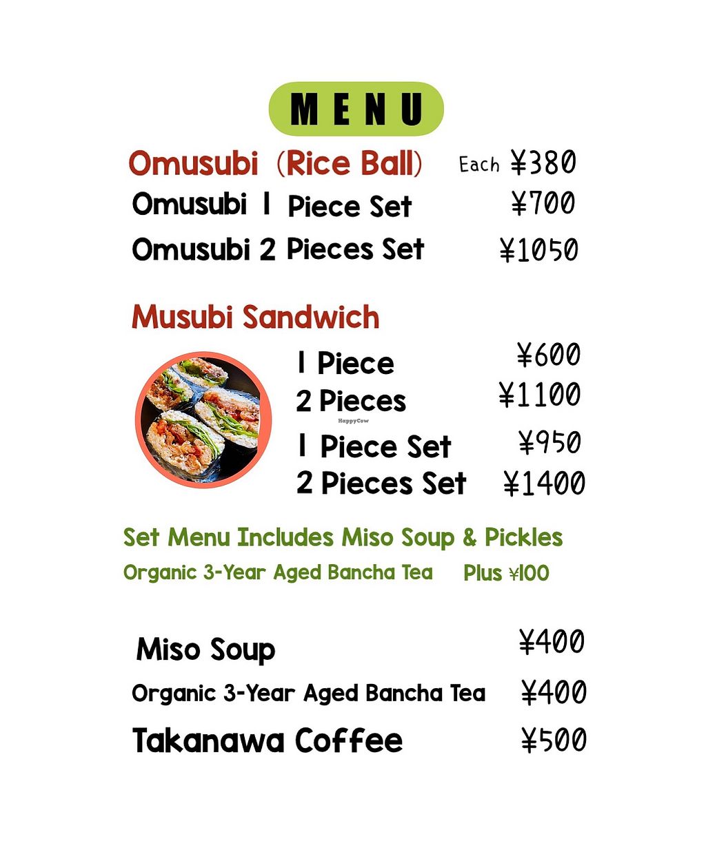 Fully vegan Japanese rice balls (omusubi), rice sandwiches, miso soup and coffee. All natural ingredients. Japanese tea and coffee. Open Tue 7:00am-10:00am, Thu 7:00am-10:00am. Schedule may change.
