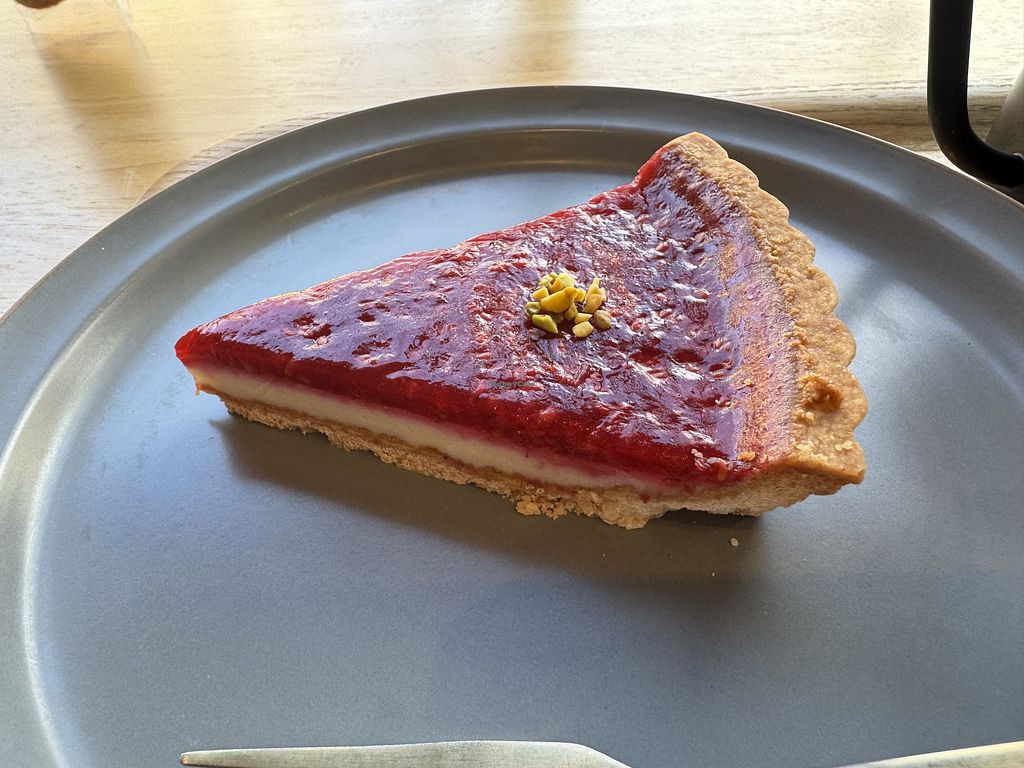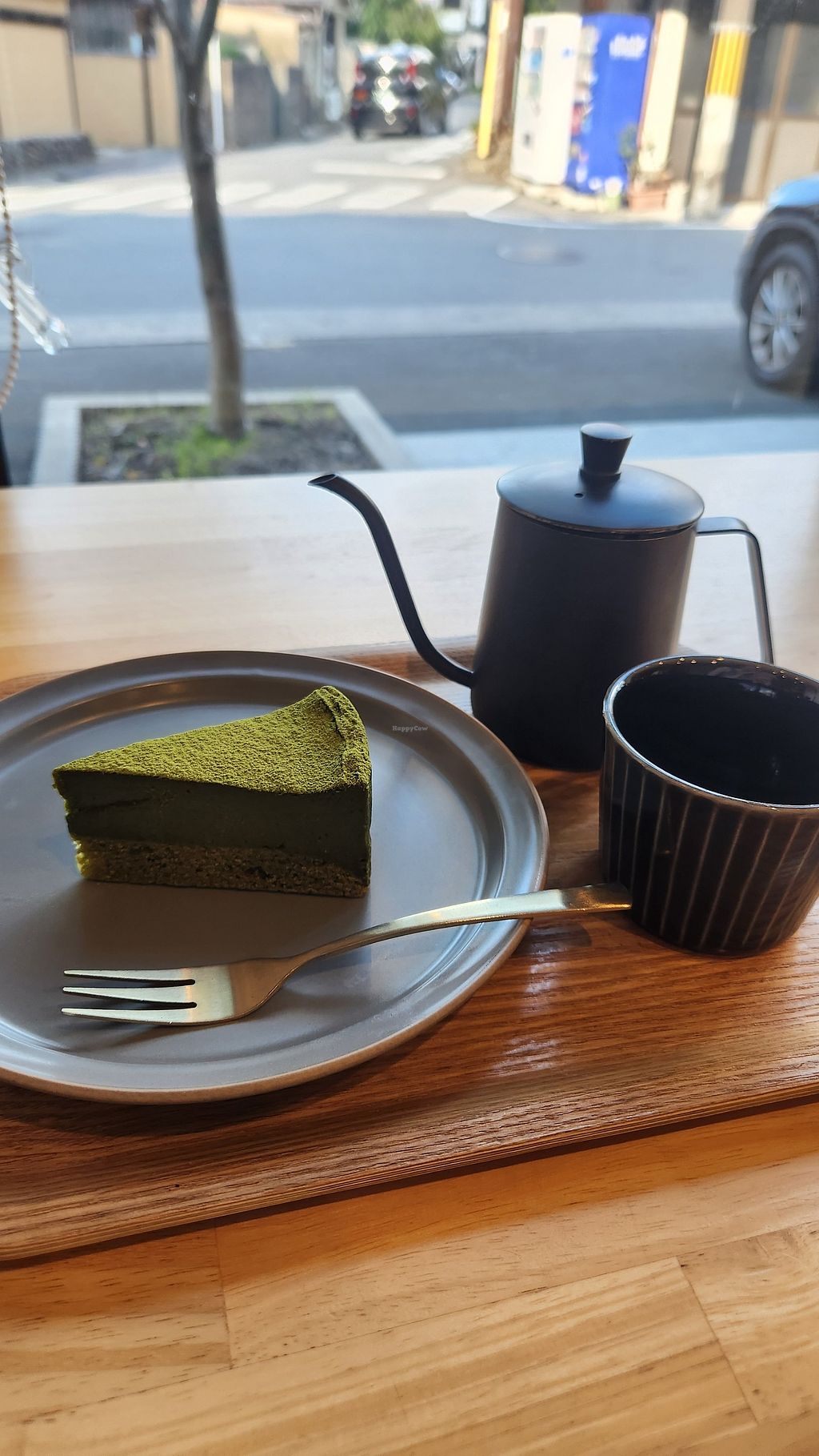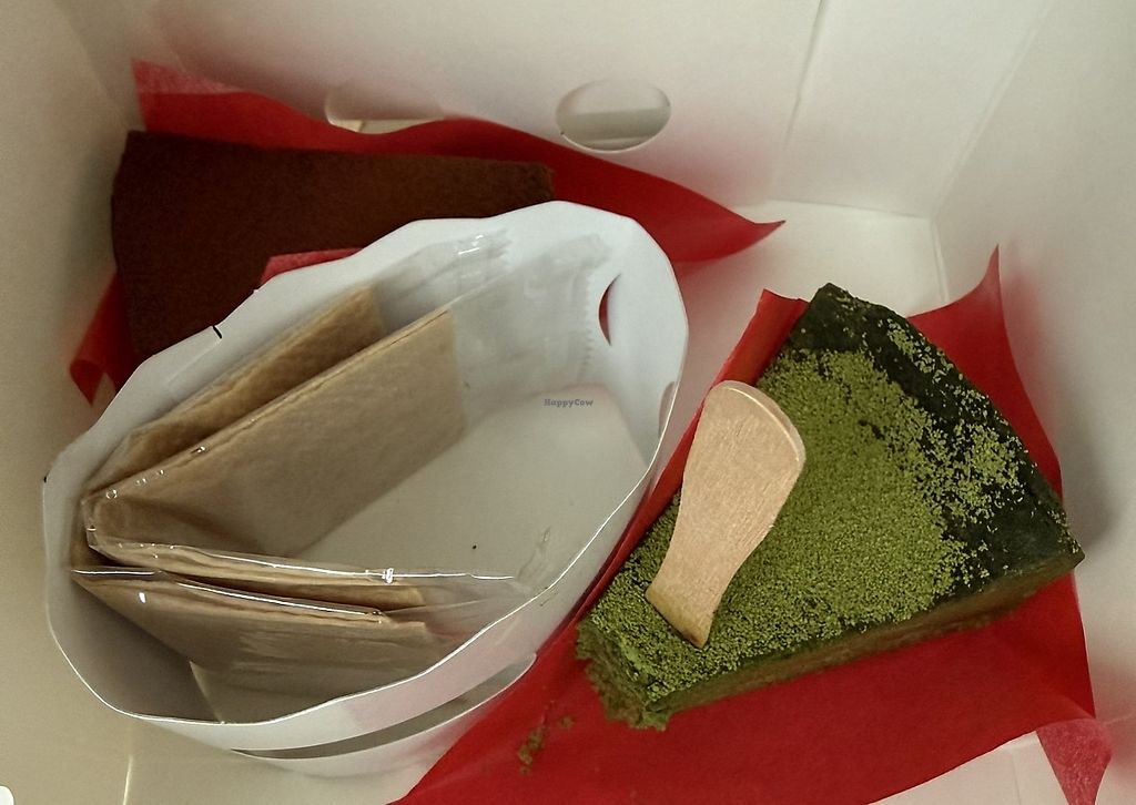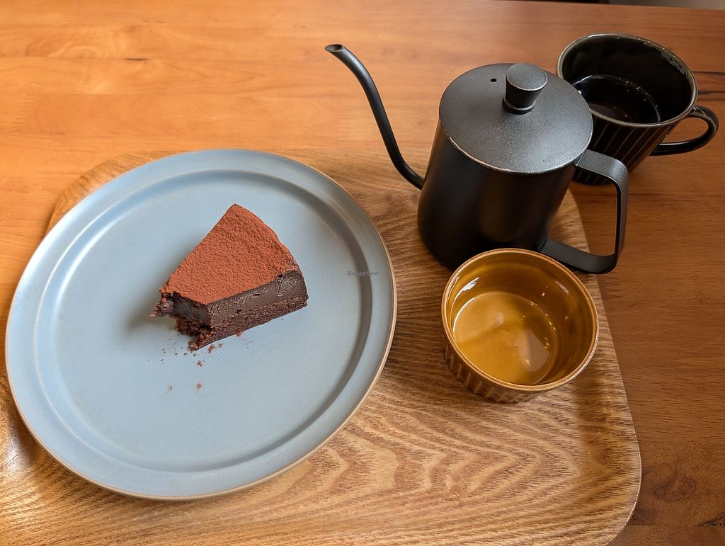 Housemade Lemon Squash, Tofu chocolate cake and Uiji Matcha & Black So…