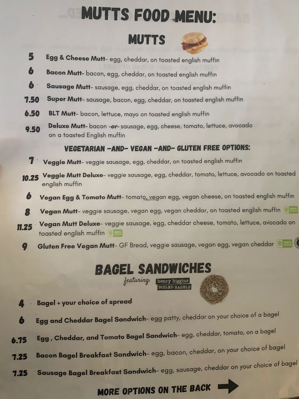 Dog-themed coffee shop with dog-friendly outdoor and indoor seating, a full-service espresso bar menu, tea, and vegan food options, including breakfast sandwiches on bagels and English muffins, pretzels, and more. Open Mon-Sun 8:00am-4:00pm.
