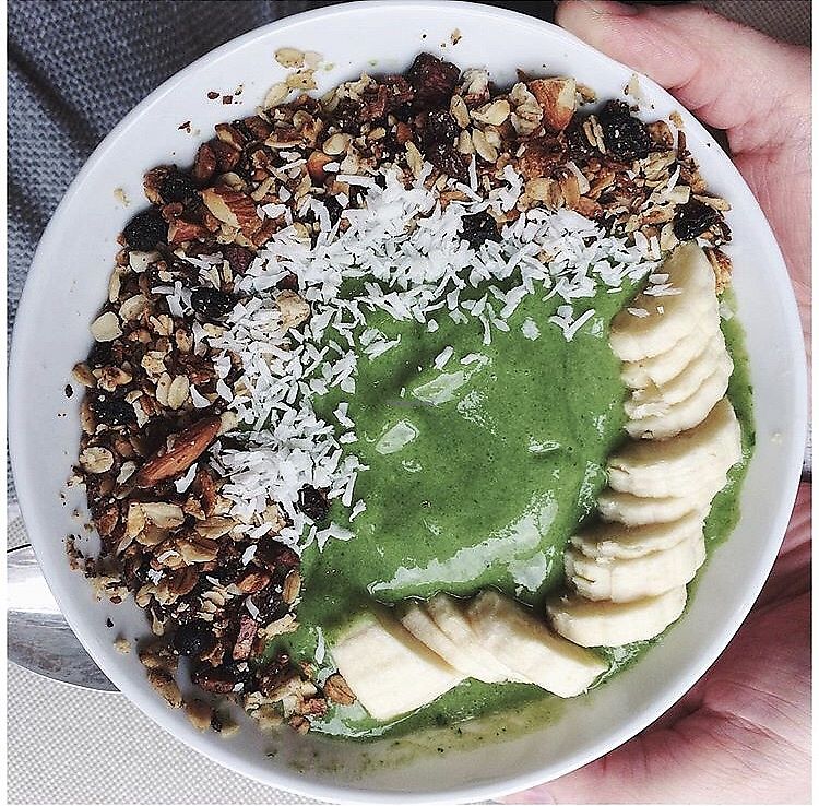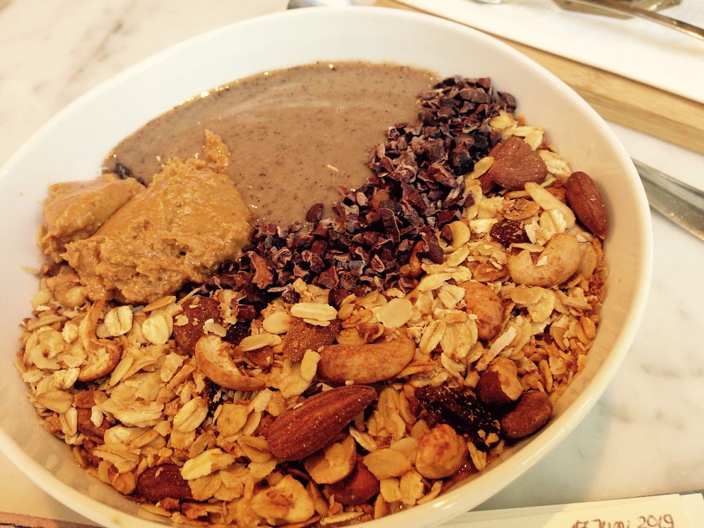 Acai bowl with granola, coconut, and peanut butter-best kombucha ive h…