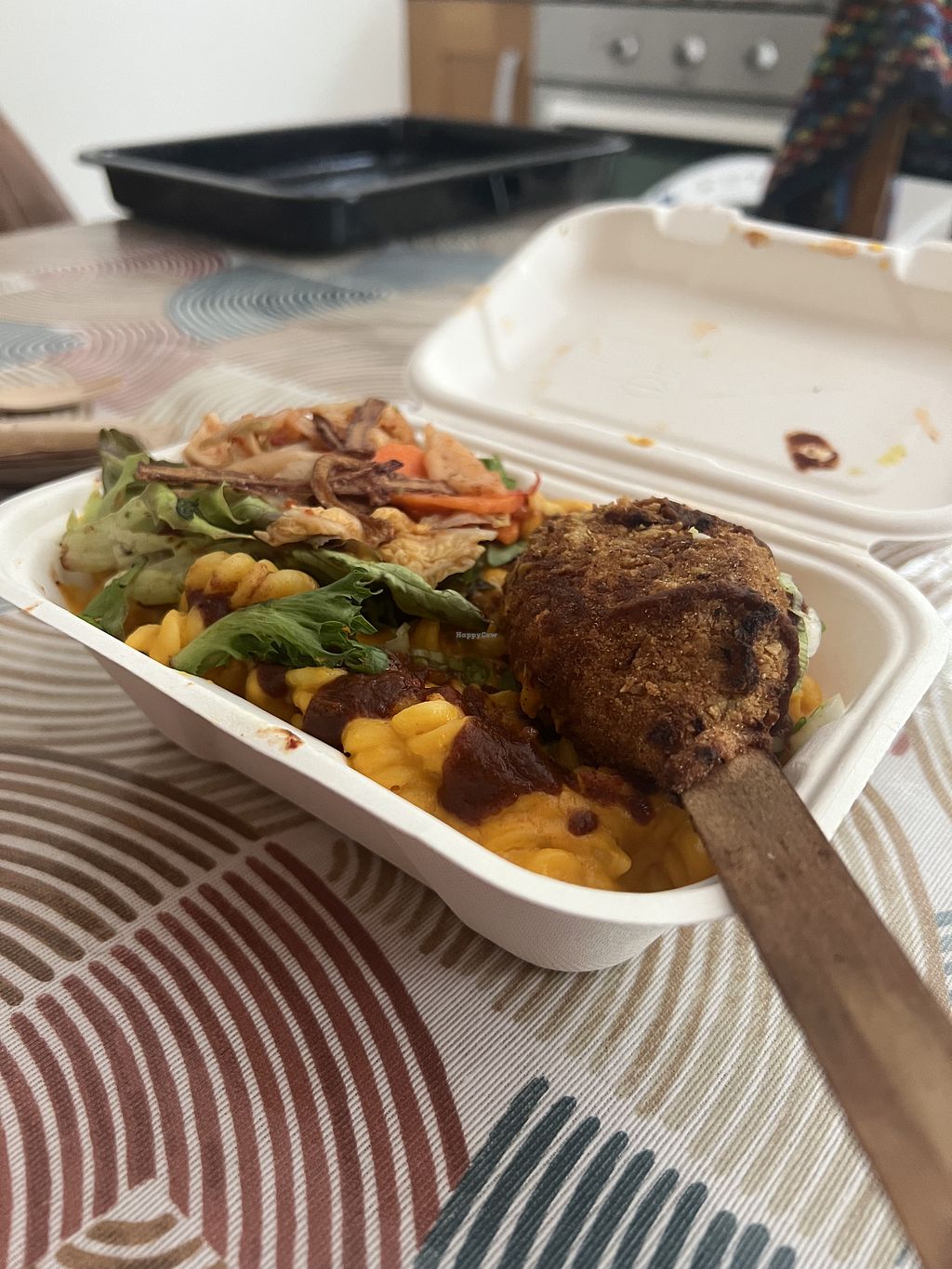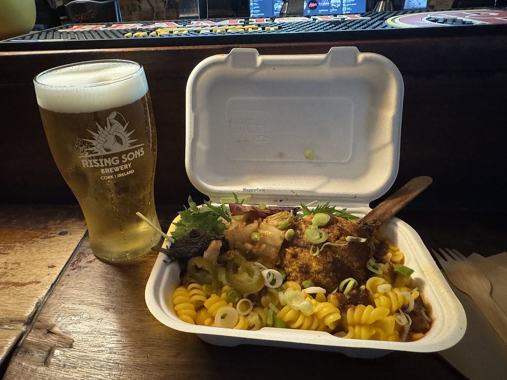 Vegan Mac and cheese!! 🌱🧀😋 It’s a takeaway spot so I took my food to a bar close by and had a local beer with this amazing meal.