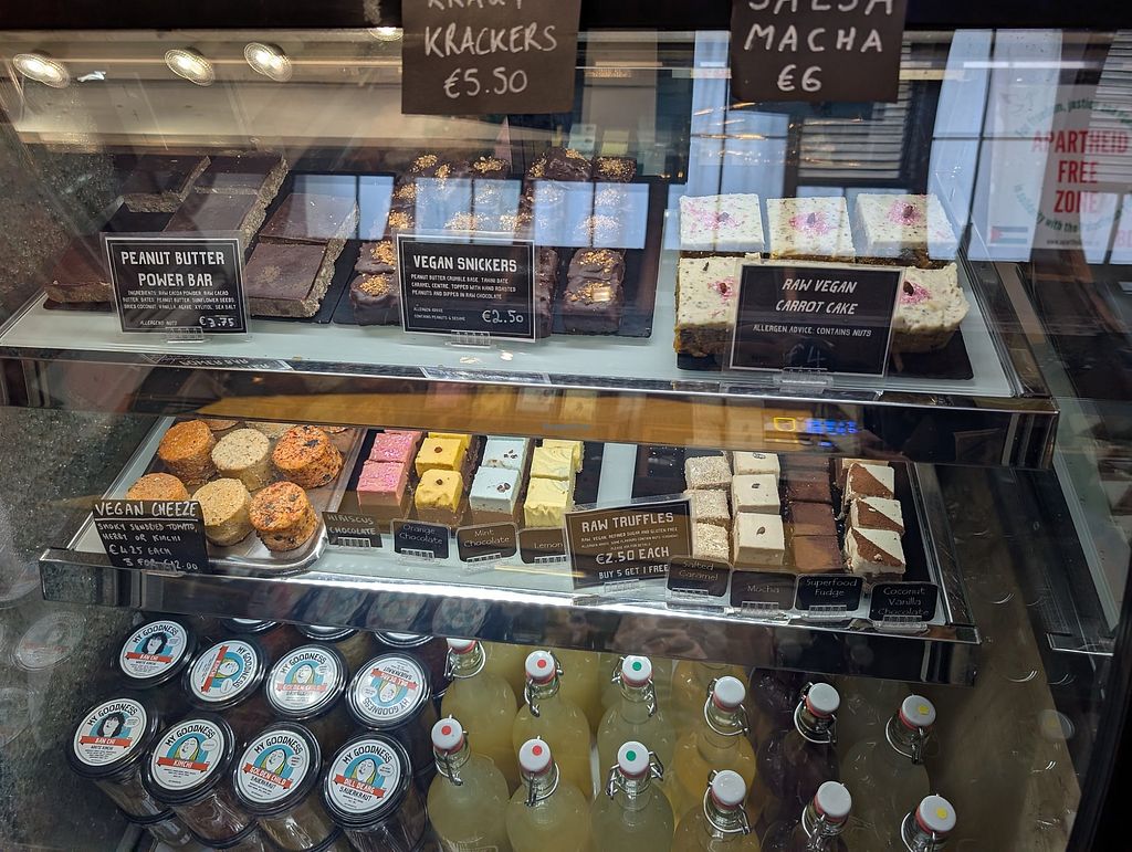 Il ragazzo che ha messo su questo posto è un pioniere del vegan! Una perla rara in Irlanda ! Gli ha insegnato tutto una ragazza texana da sempre vegana … tutto auto prodotto, fermentati, tempeh, kimchi, kombucha, vegan cheese..