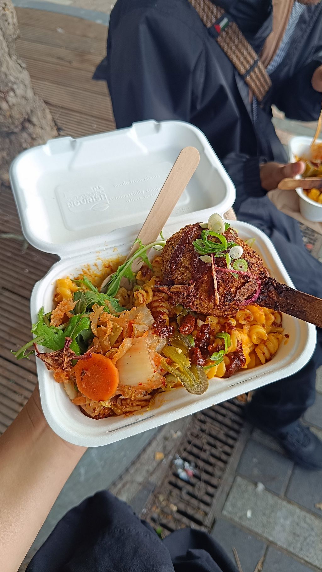 Kimchi Mac topped with mushroom drumstick 🤤
