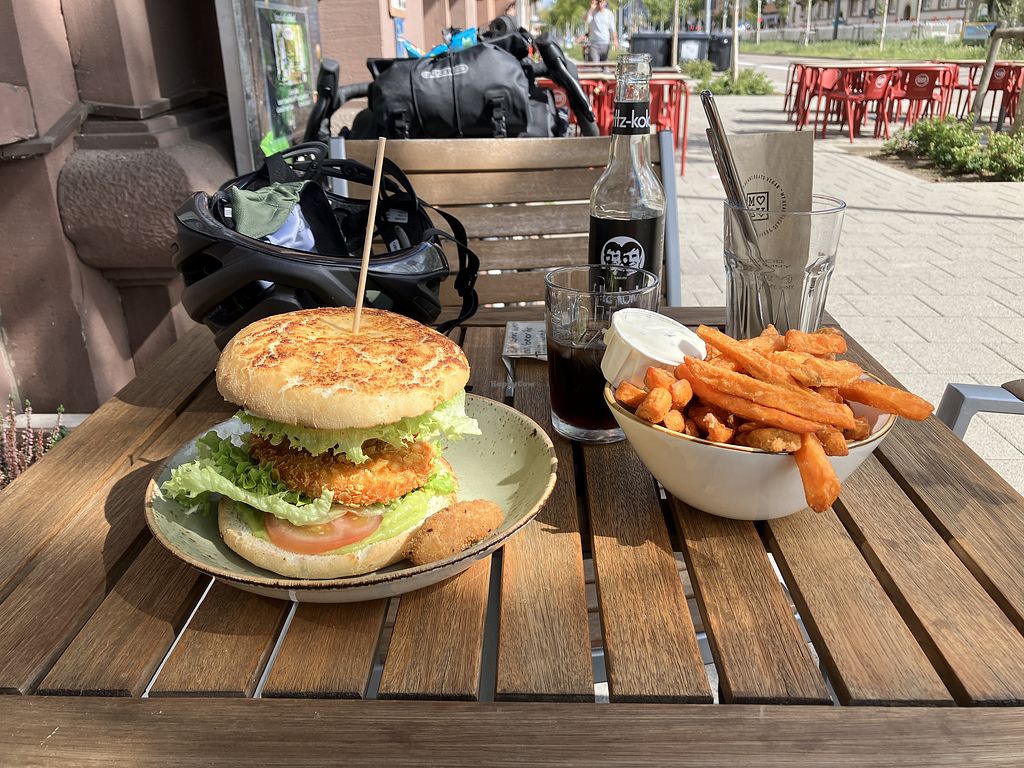Vegan restaurant in central Karlsruhe. Lots of options to choose from be it burgers, sides, dips etc. Food was pretty good, if just a tad expensive. Perhaps this is kinda my pet peeve, but I find the practice to only do menu’s by QR-Code annoying, especially if you need to open a new window to see the Info about every dish. Cake tasted like it wasn't really done in-house. Still, this place is good for inviting non-vegans along!
