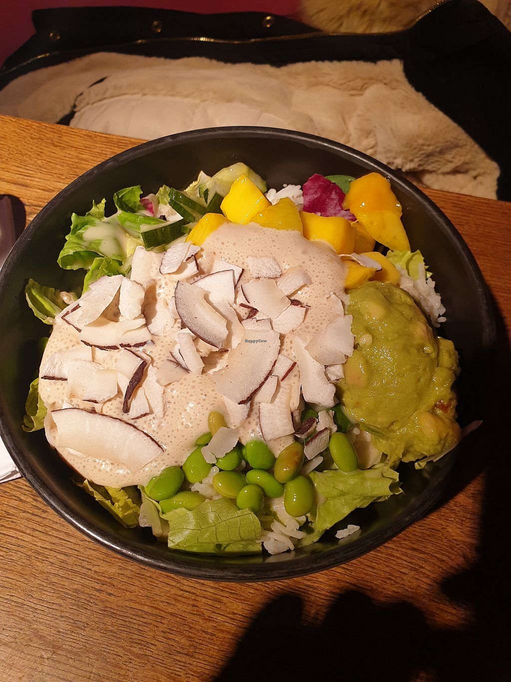 The is the option to create your own bowl with the different ingredients. I took the peanuts bowl which is ready. Food is marked as veggie/vegan.