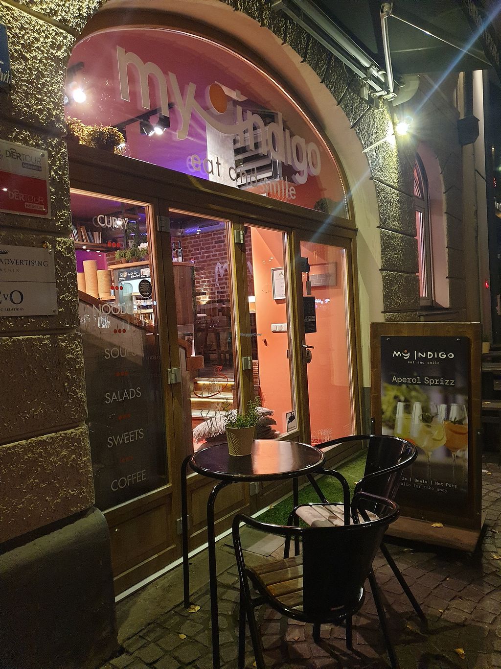 Entspannt, freundlich, gemütlich. Gutes Angebot an veganen Gerichten, tolles Ambiente.