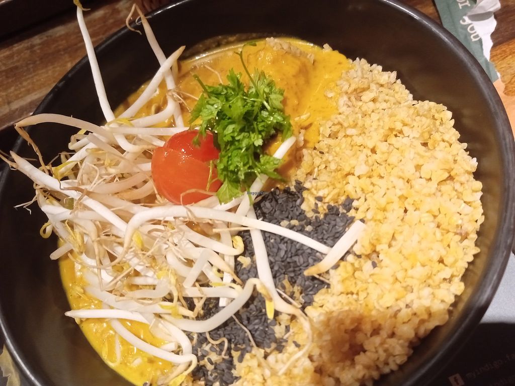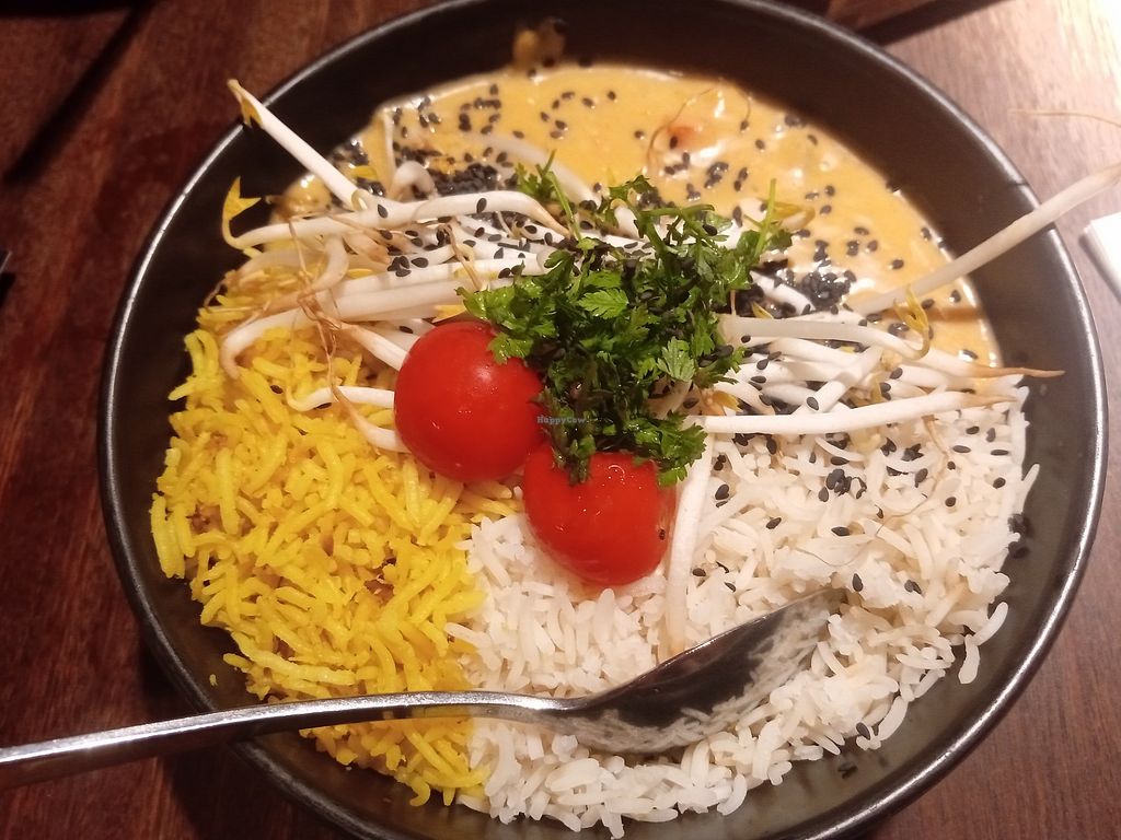 Read moreUnfortunately it is a big portion of rice and a little portion of sauce. For vegetables you have to pay an extra charge. In the normal sauce there is only coconut milk, corn, carrots and a little bit sprout - to less vegetables for my taste. In addition we had the lemongrass soup, indicated as vegan. It tastet really like meat and nobody of the staff members could explain, why the soup has this taste. It hasn't tasted like lemongrass.