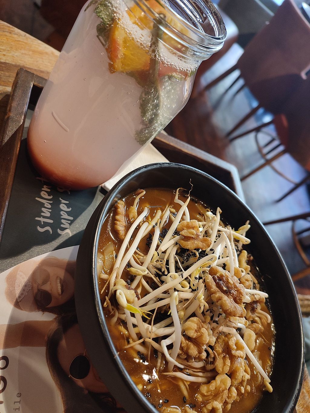I ordered a deal of the day - vegan Asian peanut butter bowl with lemonade for less than 10 euro. Food was decent, but rice was a bit dry, same as some veggies which seem to wait quite long to be served. The place has a great potential to serve very good food, but with little clients inside it may be difficult to keep it up and running in high quality. There are vegan options within every category: bowls, noodles, soups. You can pay by card and it’s open longer than nearby vegan places.