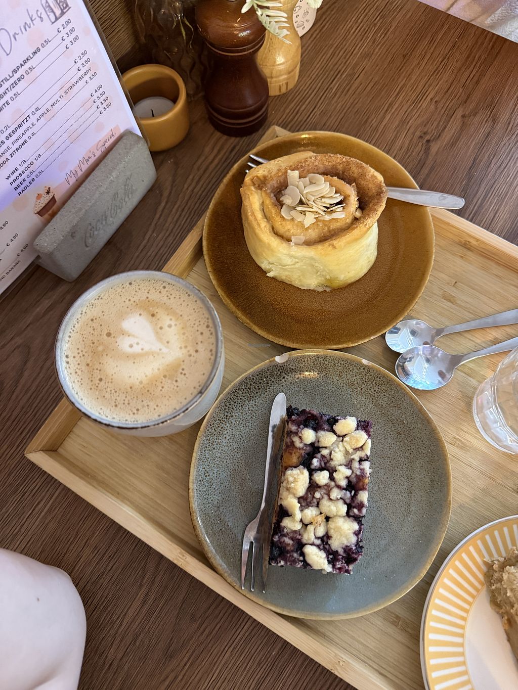 We had the cinnamon roll, apple cake, iced chai latte and iced coffee. Everything was super delicious and the staff was really nice and made for a great stay at the place.