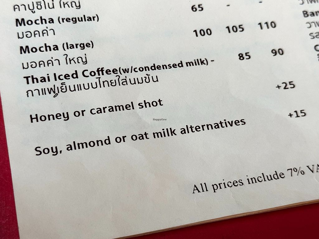 Read moreThe main thing I didn’t like about this place, and the reason I give it only 2 stars (meaning “needs improvement”), is their claim of “ethically sourced” ingredients. It feels very insincere to write that on the front page of your menu when the vast majority of your dishes contain meat and dairy. On top of that, they charge 15 baht extra for plant milk, so even if you personally try and make a more ethical choice, you are penalised for it. I hope they rethink this in the future.
