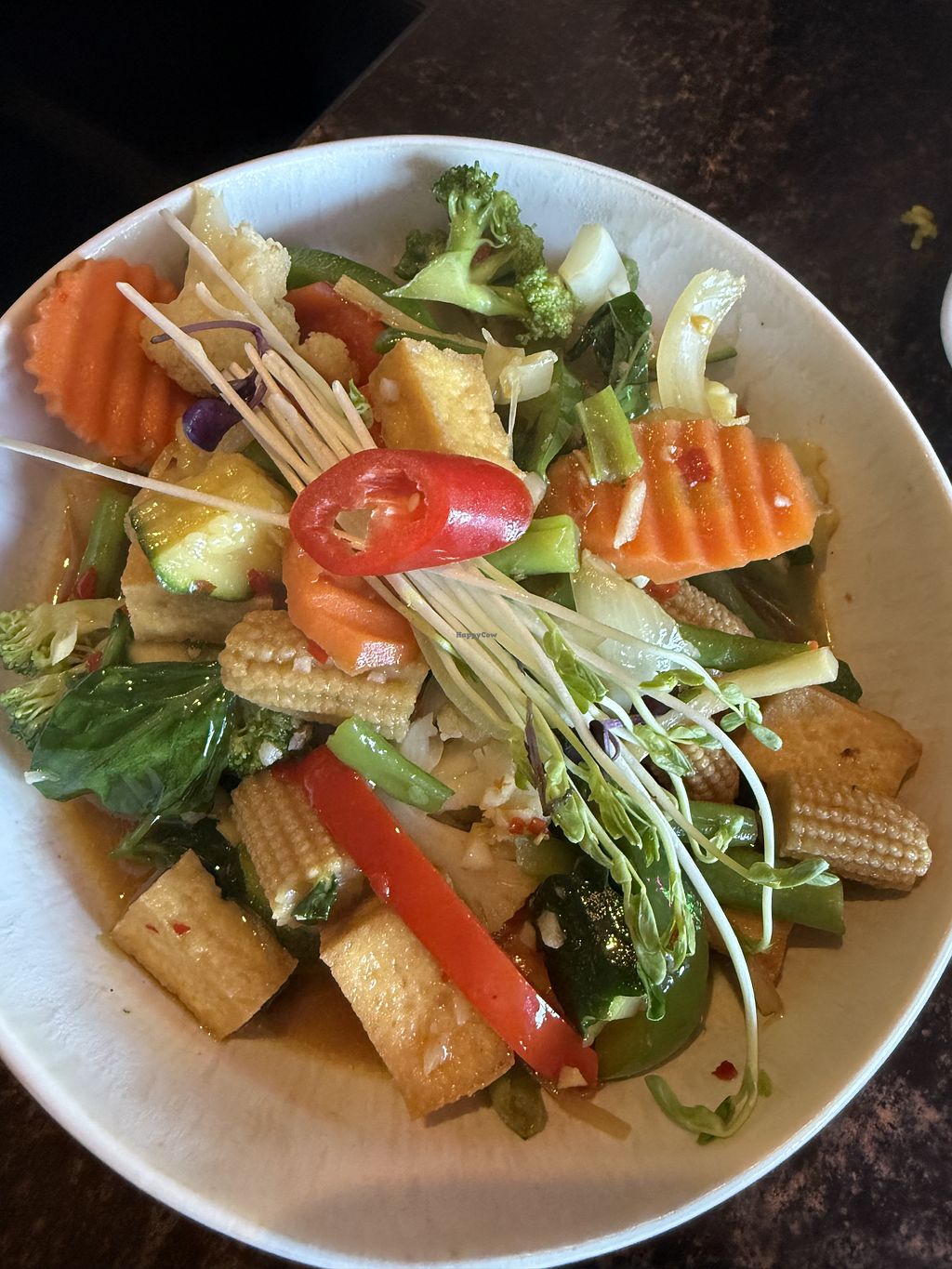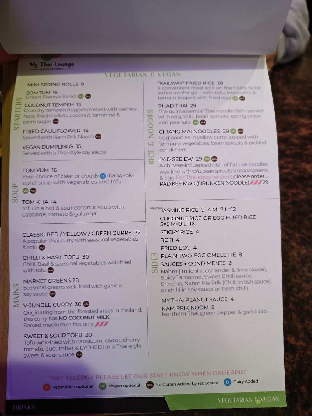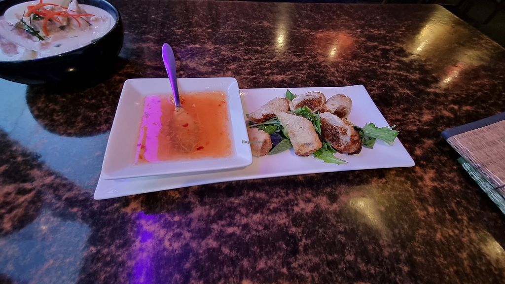 Vegan dumplings, Tom kha gai soup, papaya salad, jackfruit and pineapp…