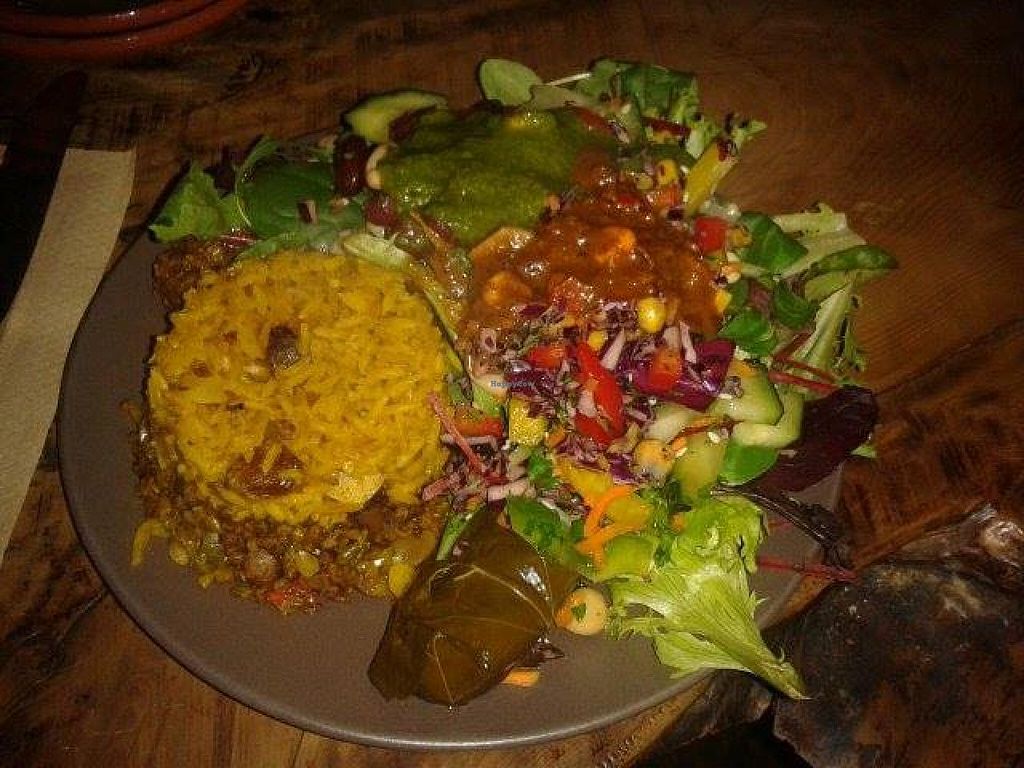 Stuffed vine leaves with humous and salad - delcicious!