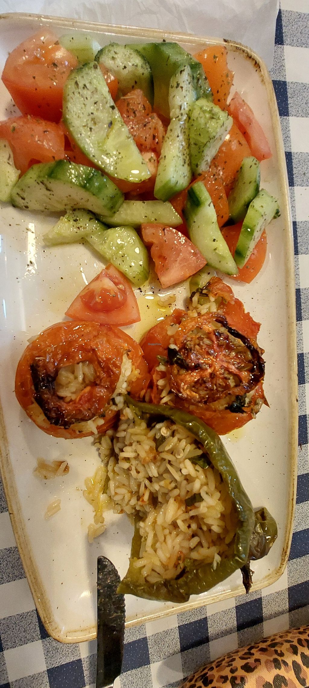 Fava bean dip was very good and came with plenty of fresh bread. The rice and mint stuffed green pepper and two tomatoes were OK but a bit bland. Tomato and cucumber salad was OK. Plenty of food. Needed more flavour but as it's difficult to get any vegan food in Malta at least it's something. Staff were very nice and beer was good.