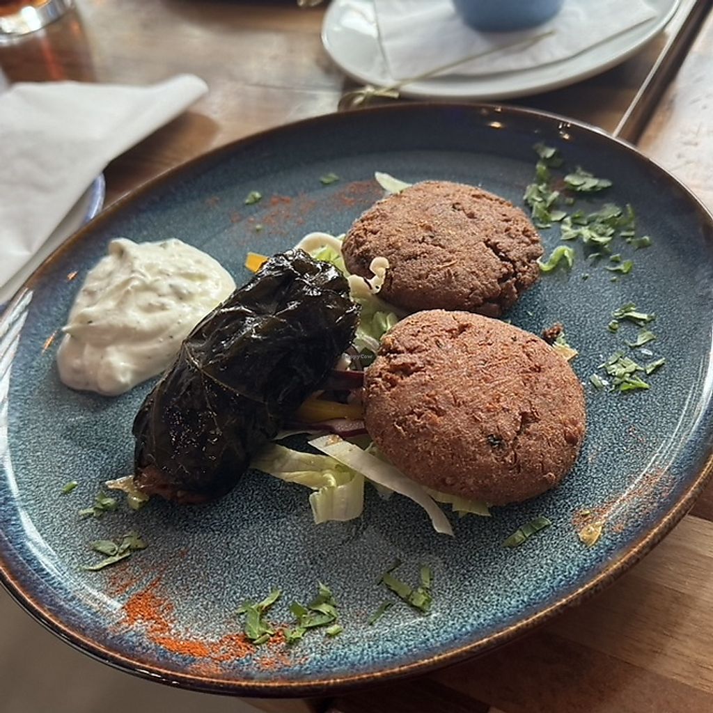 I ordered the vegan mezze as I wanted to experience a variety of their vegan dishes and it did not disappoint. The pitta and dips, stuffed vine leaves, falafel, delicious hummus, and an amazing Briam dish to finish. All completely authentic and unbelievably yummy!