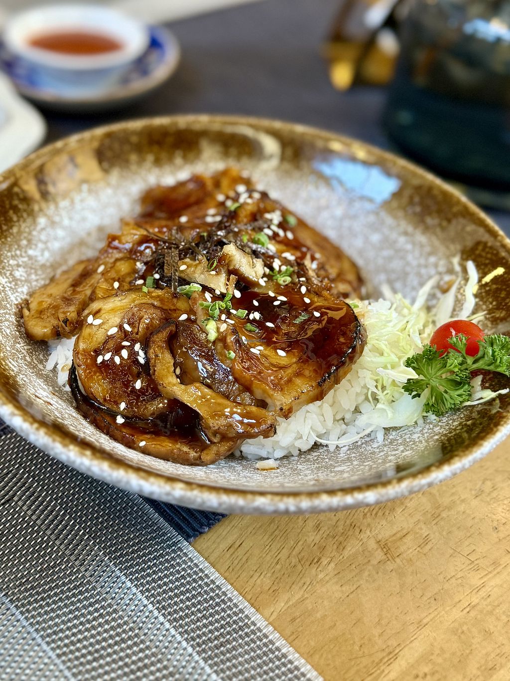 Rice dish with some kind of fake chicken
