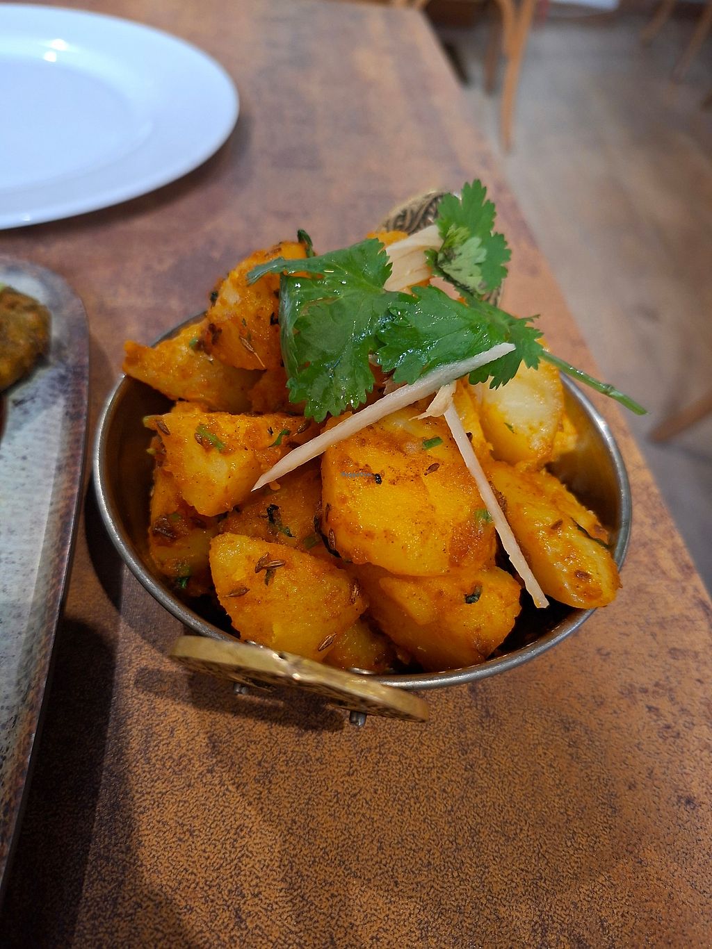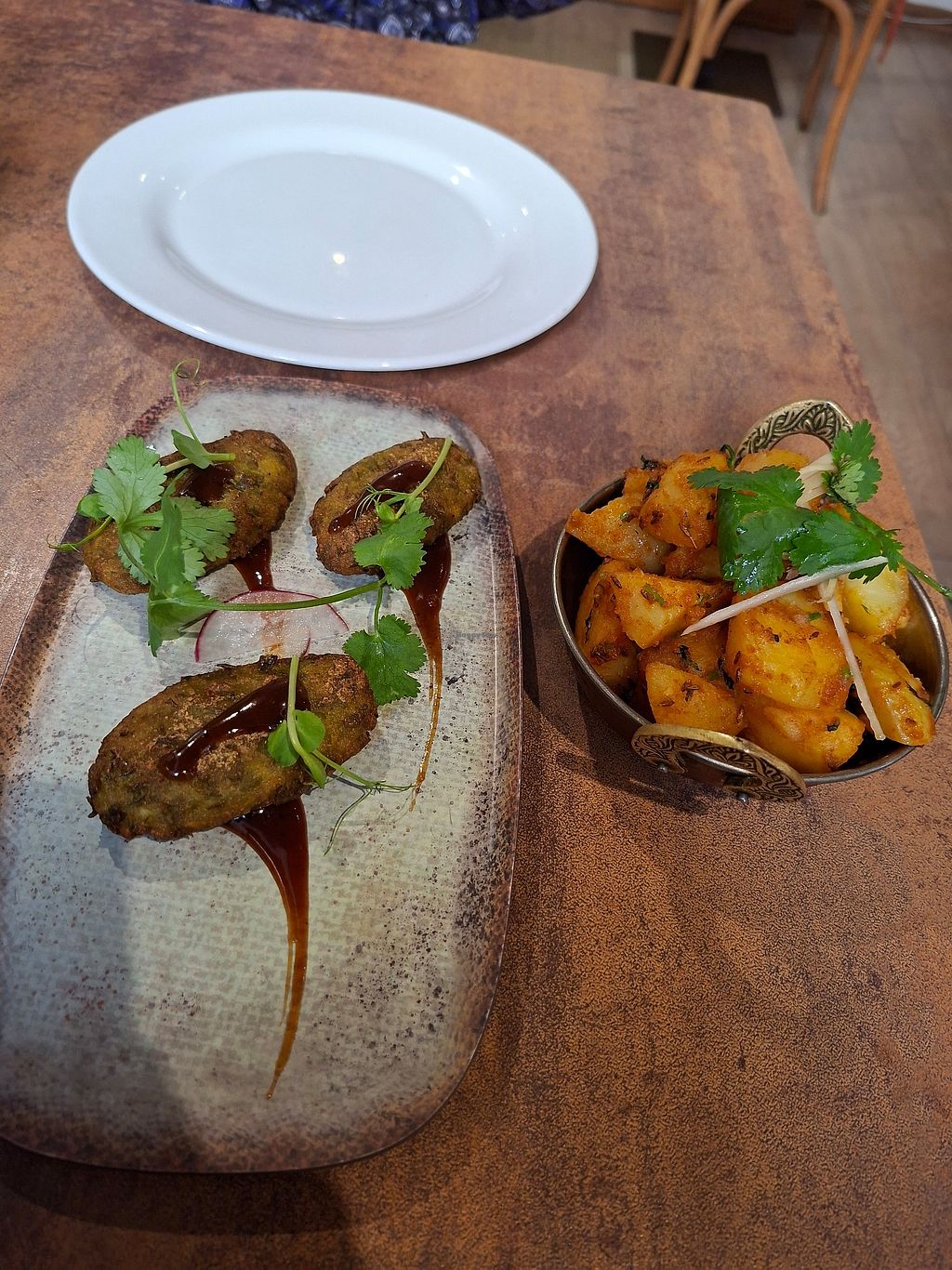 Delicious curries and modern take on the cuisine. We ordered lots of sides and small dishes to share which were all clearly labelled on the menu as vegan: Roti, plain Naan, Tarka Dahl, Biriyani (the sauce was next level warming and aromatic - complex flavours), spinach dish (can’t remember name) and the potatoes. Can’t fault any of it and between 2 of us it’s was plenty of food.