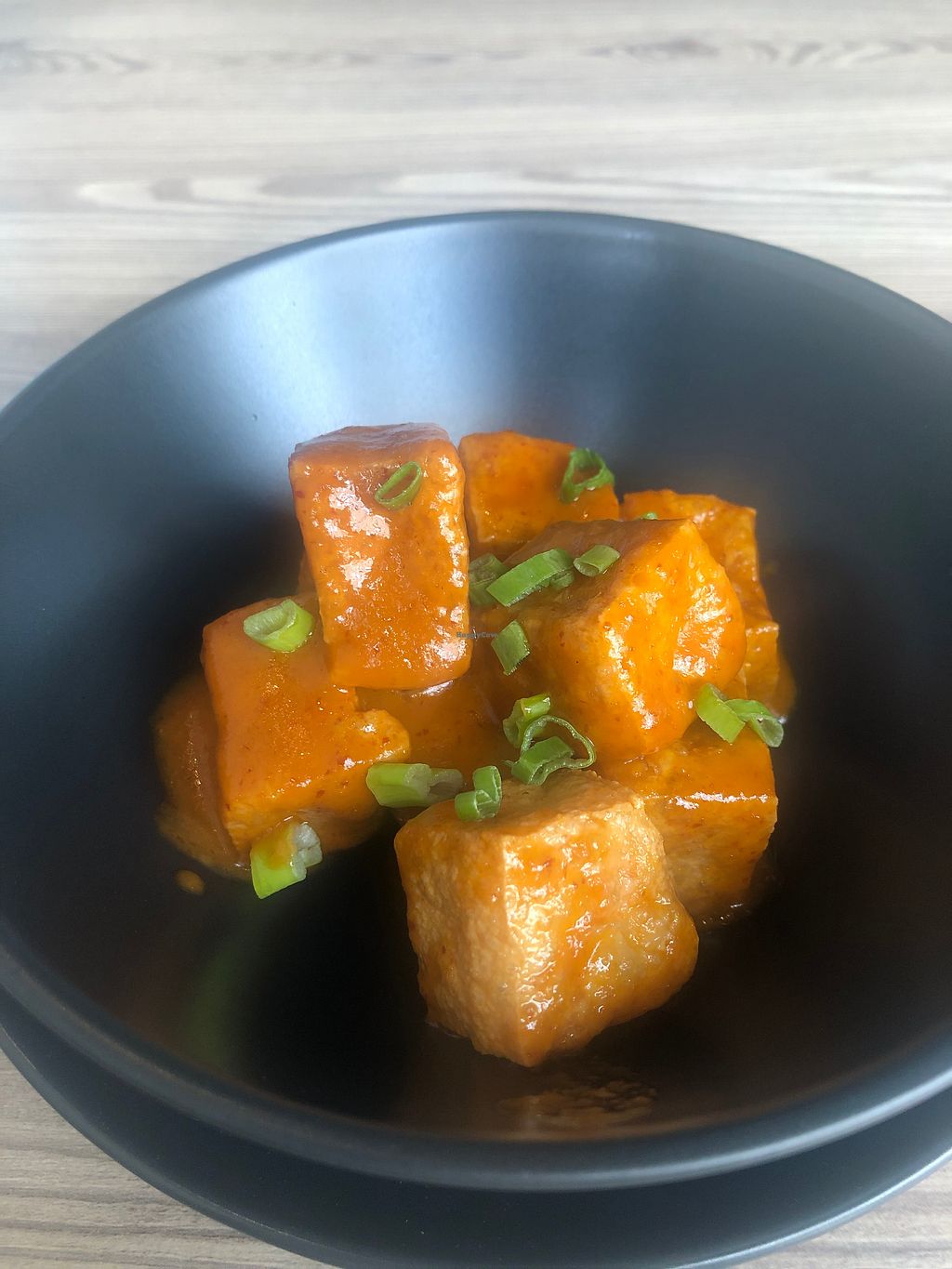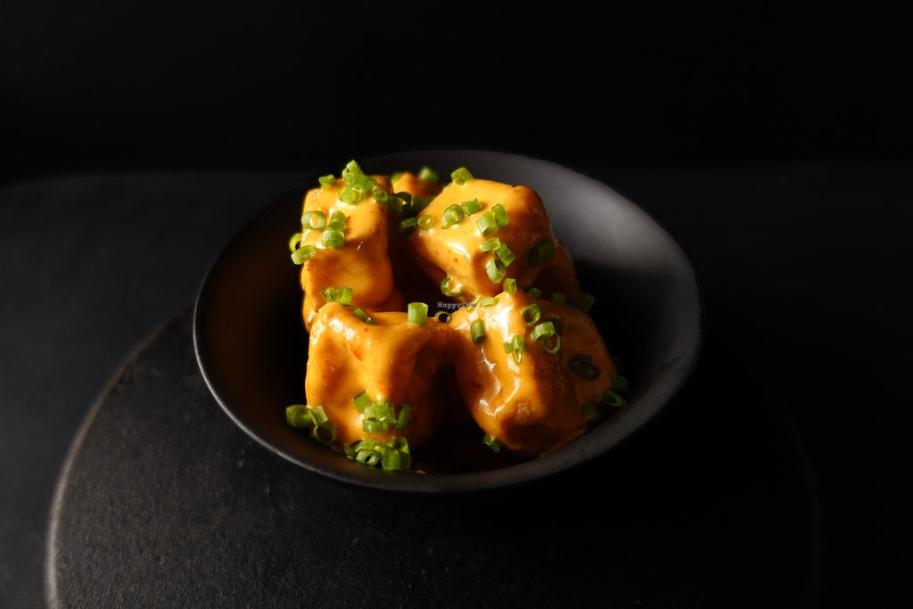 Dynamite Tofu Puffs - Deep fried tofu bites in dynamite sauce.