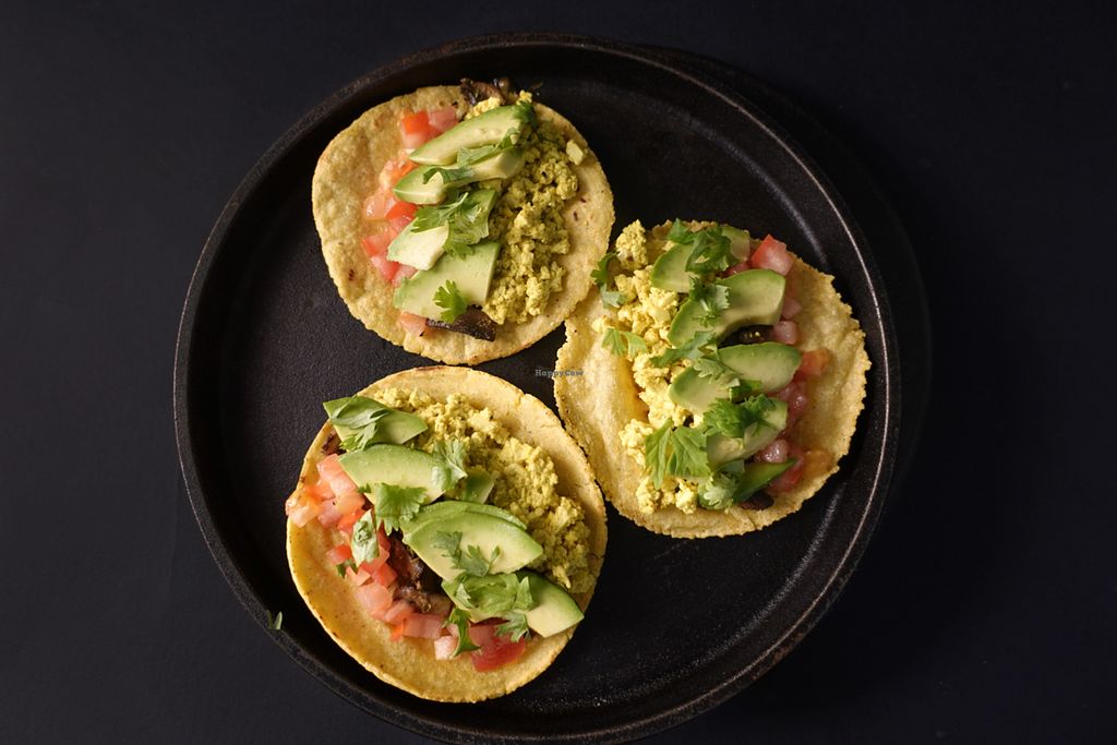 Breakfast Tacos - Scrambled tofu, sliced avocados, sautéed mushrooms, …