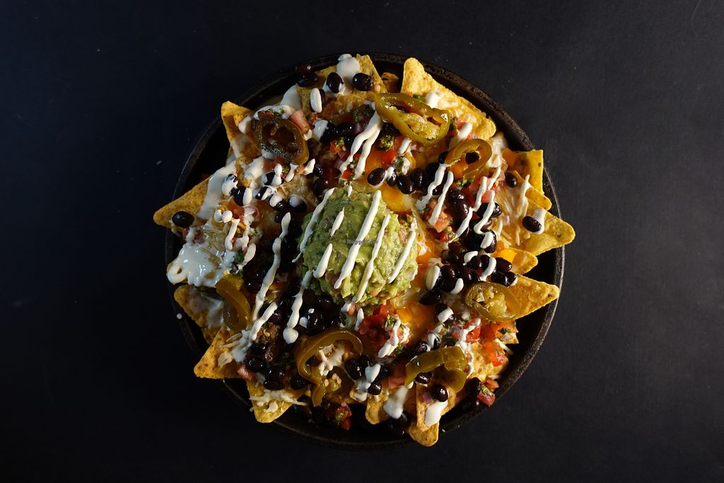 Loaded Nachos - Tortilla chips topped with cheddar cheese, salsa, guac…