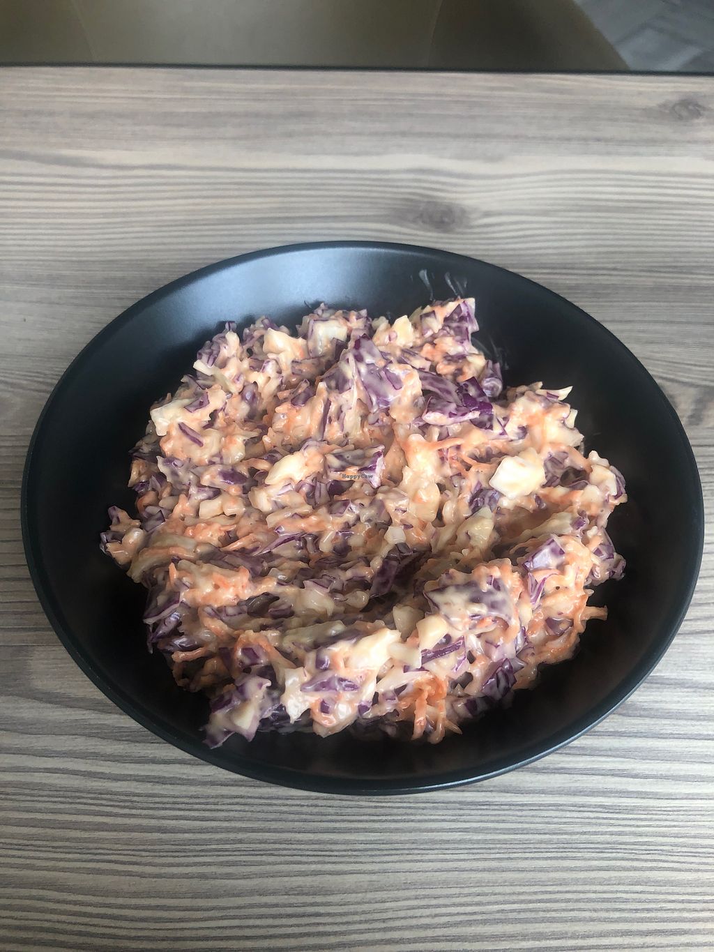 Pulled BBQ Jackfruit with mayo and coleslaw. Served with fries on the …