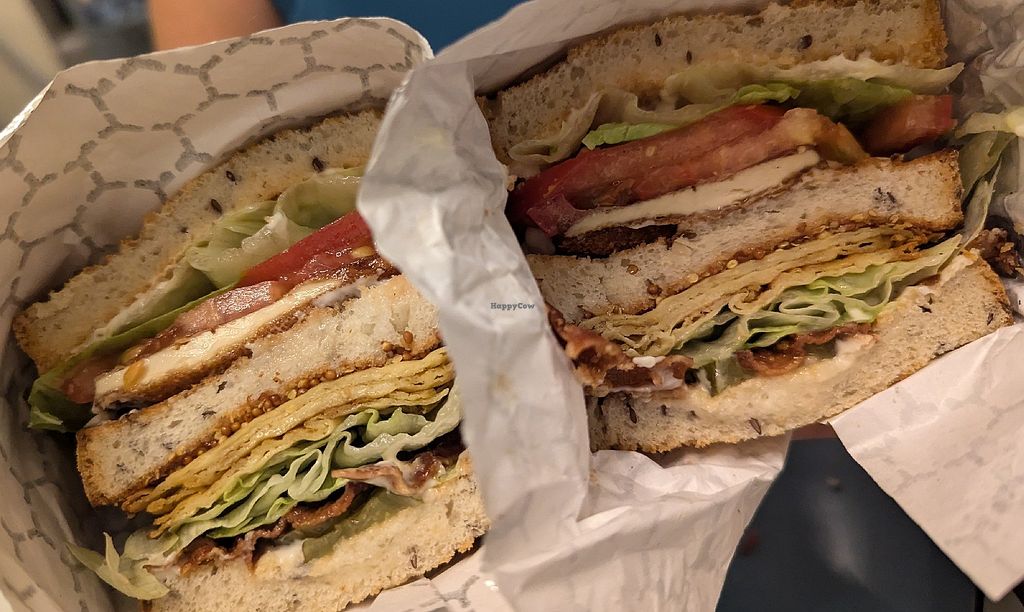 BLT sandwich with only egg, without vegan bacon. Excellent 👌