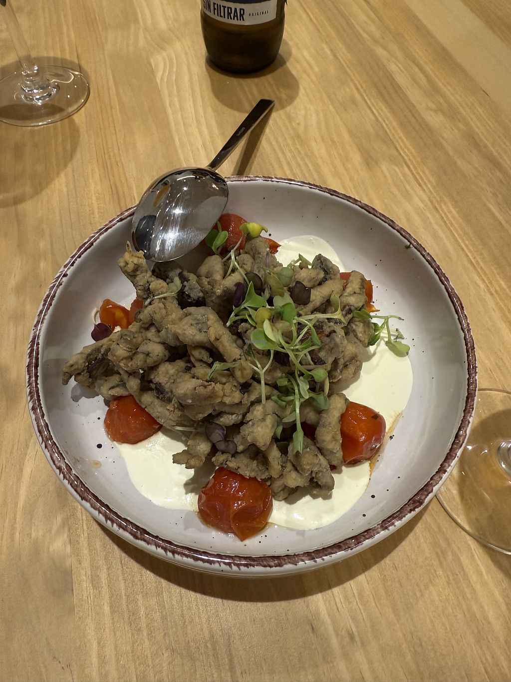 Crujiente por fuera y tiernita y calentita por dentro. El queso maravi…