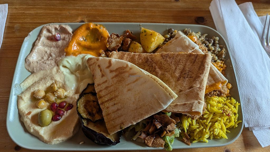 Kann den Nabati-Teller nur empfehlen. Wunderschönes Ladenlokal, große Auswahl an veganen Speisen.