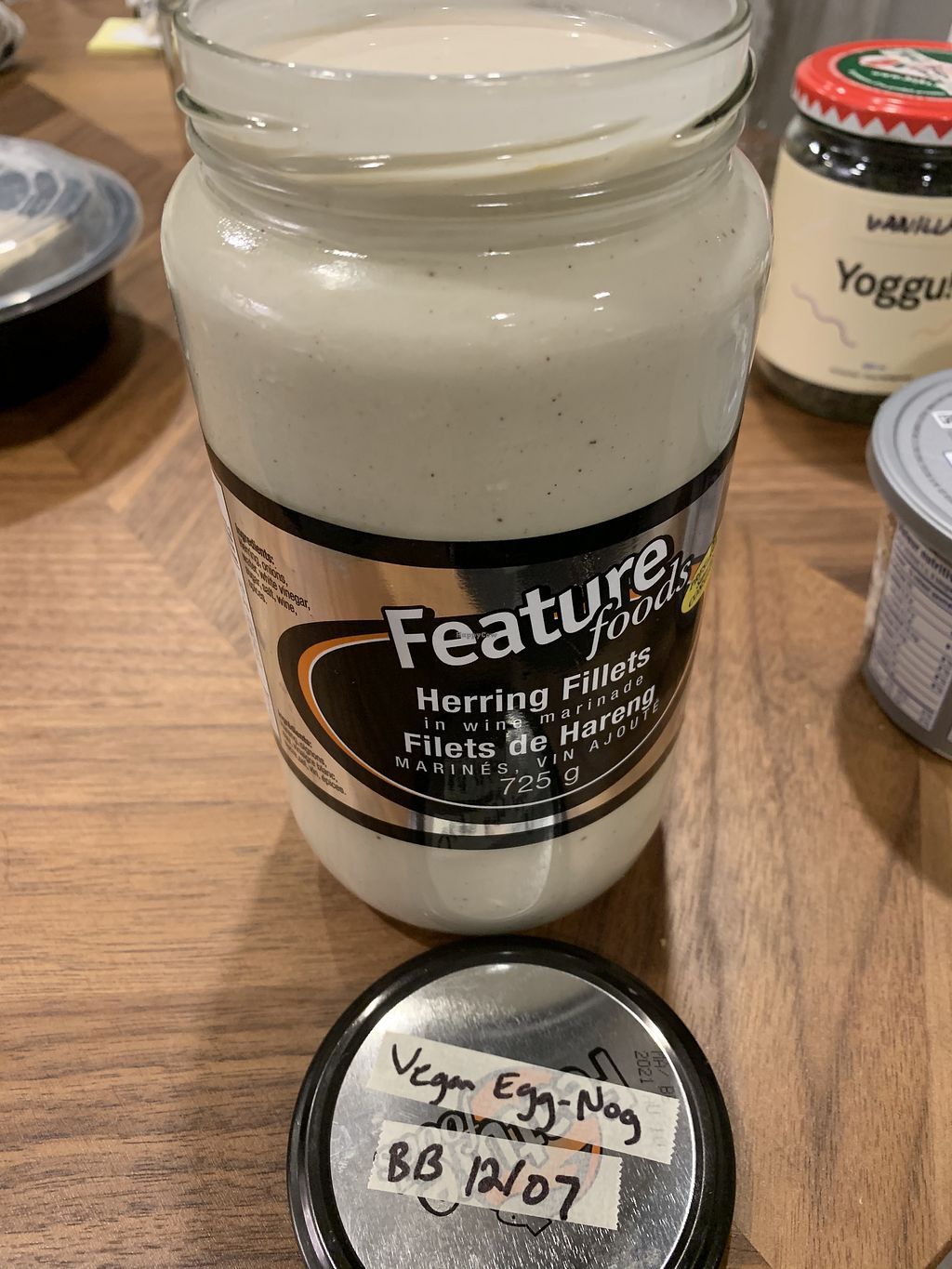They apologized for bottling my vegan egg nog in a pickled herring jar (photo) last November and sent me a $5 credit (the nog was $12). I then didn’t order anything for 7 months feeling pretty burned and when I did, they chased me for a 7 weeks emailing to collect a $4 bottle deposit on a hummus substitution they made and chose to place in one of their $4 jar (which btw are also recycled). They are loosening up a bit and you can now order some stuff at the window and I don’t know if they’ll take your own packaging, but I’ve switched to ordering from Jarr (zero waste) and LivLite (low waste) delivery only shops. Neither of them are 100% vegan but they have far fewer animals products than Nada.