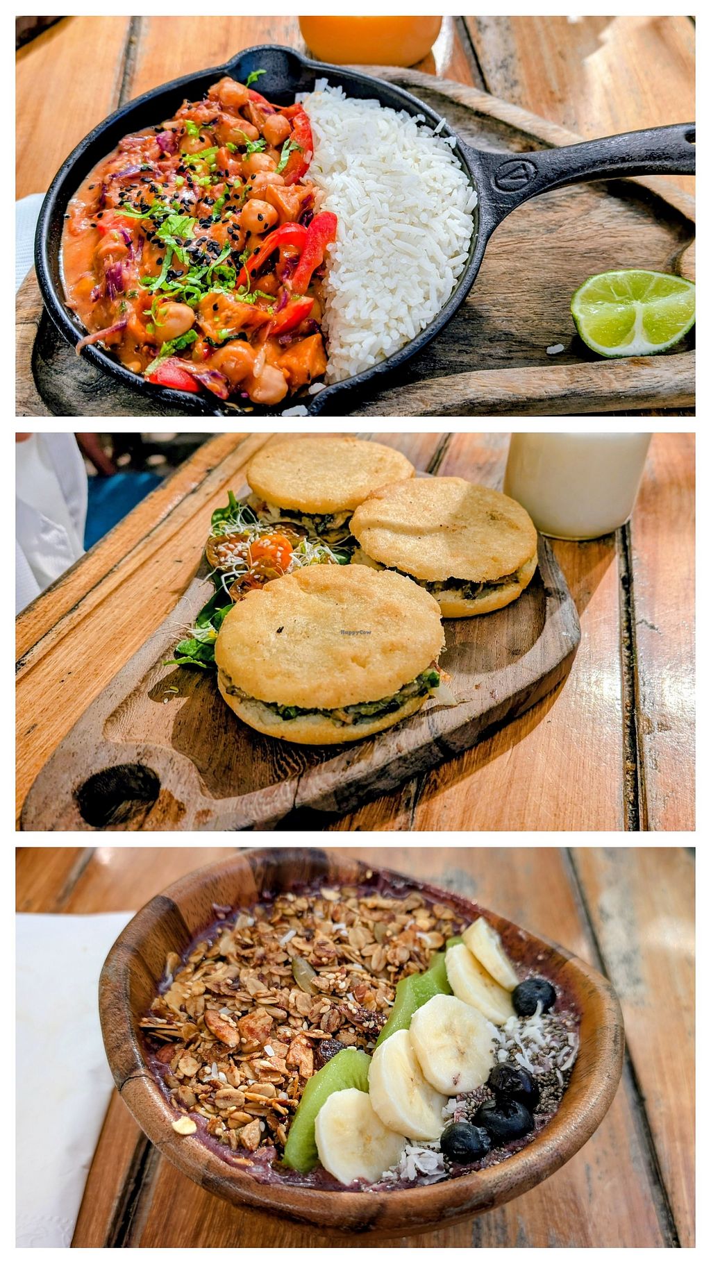 Açaí bowl, café americano y plato vegano