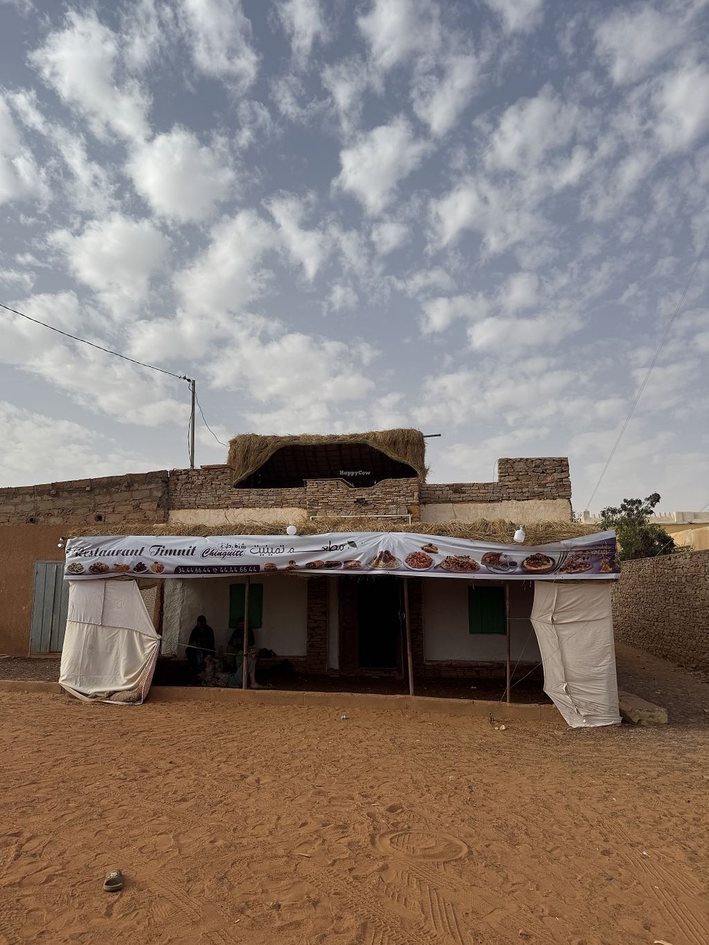 Serves meat, vegan options available. Restaurant on the main road of Chinguetti right before the road crosses the riverbed heading to the UNESCO site. Staff can prepare vegan dishes on request, such as leksour which is a Mauritanian stew served on pancakes.