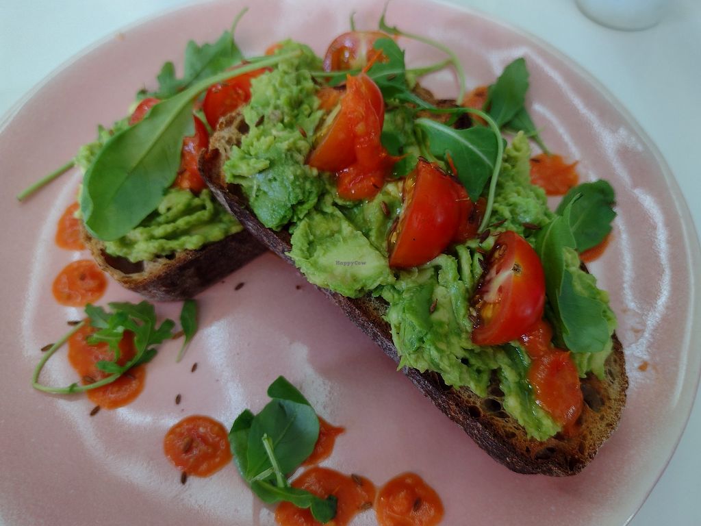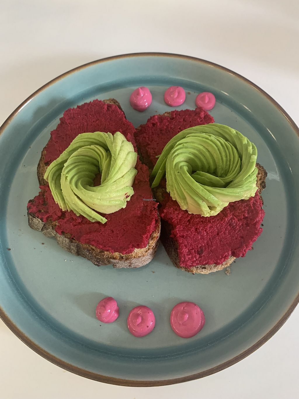 Avo and beetroot hummus on sourdough