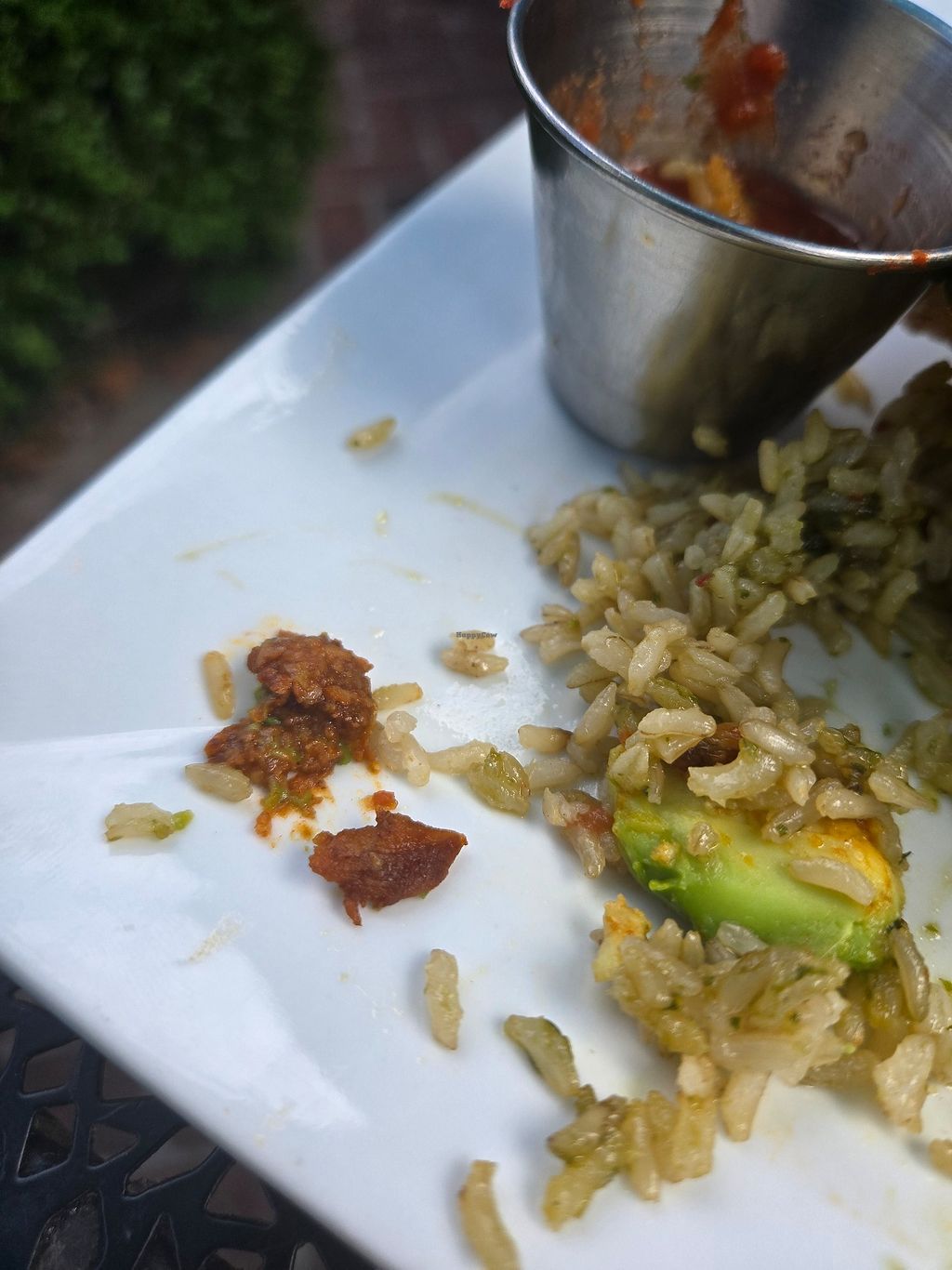 Seasonal vegan scramble. Three-“eggs” with cheese. Great potatoes
