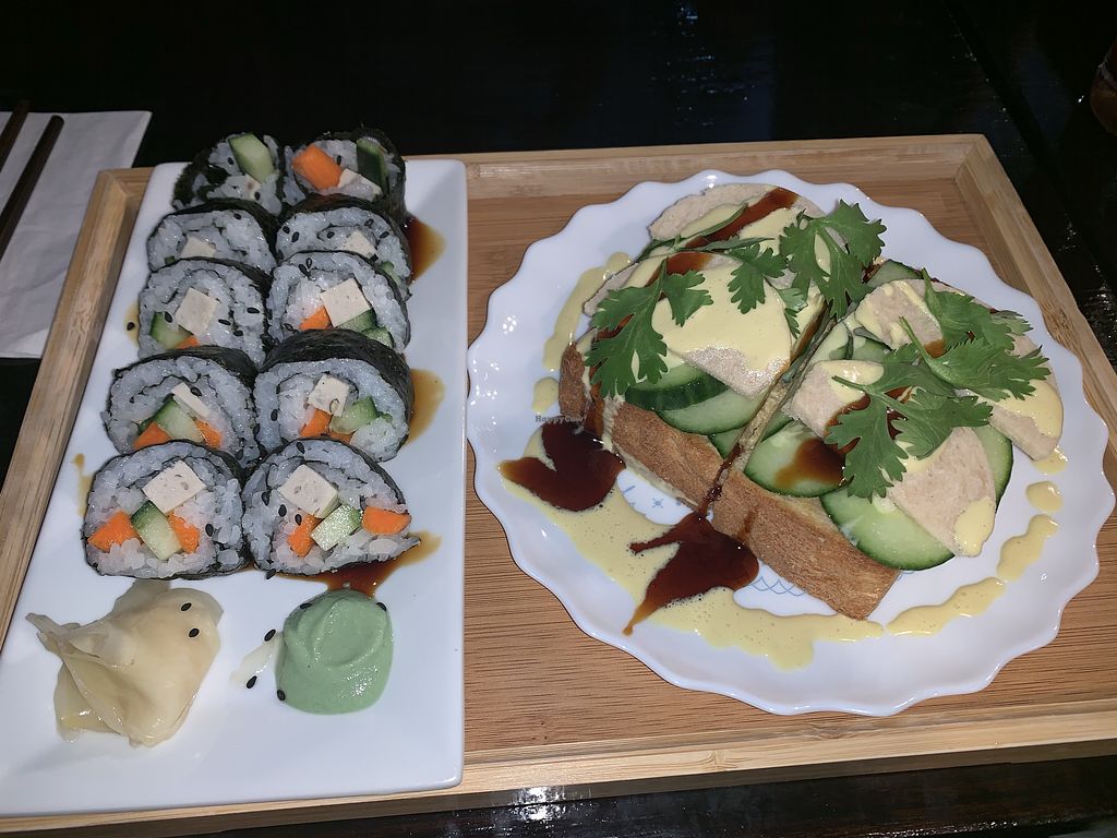 Carrot pate sushi left, banh mi toast right