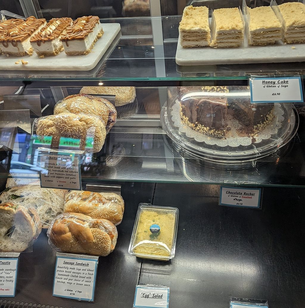 I go here pretty frequently. It's dog-friendly so good for combining with a walk in Crystal Palace park. Tried the new menu this week and can very much recommend the schnitzel & challah sandwich. The cakes choice is so exciting it's difficult to choose, but an essential for a first-time visitor is the honey cake.