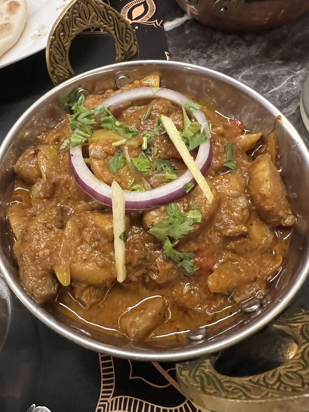Serves meat, vegan options available. Indian restaurant with vegan options, including rice, tofu dishes, and more. Specify vegan when ordering. Open Tue-Sun 11:00-15:30, 18:30-23:30. Closed Mon.