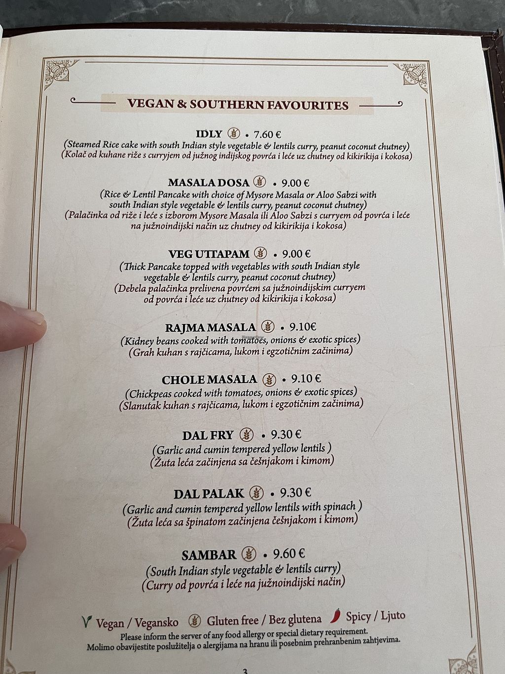 We had the vegan Dosa and a vegan Parotta. The waiter was very friendly and helpful. I would recomend the restaurante to everyone.