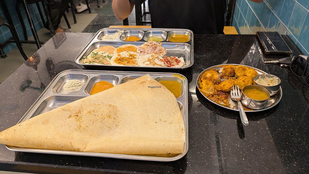 Vegetarian restaurant specializing in South Indian cuisine. Menu includes tomato fry, gobi fry, tomato ottapam, paper dosa and more. Menu is not clearly labeled as of March 2023. Specify vegan when ordering. Open Mon-Sat 7:00am-10:00pm, Sun 7:00am-1:00pm.