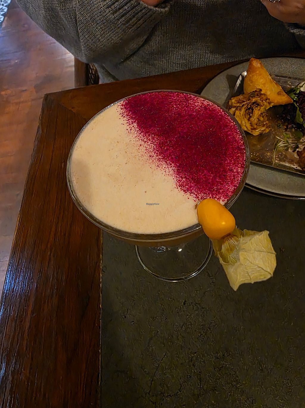Beautiful decor in a converted historic building. Excellent attentive service. As it was a Sunday we chose the buffet - apparently this is every Sunday and changes weekly. There were pakoras, samosas, massala dosa and salads and pickles for starters, then butter naan, rice with pomegranate seeds and three different curries for main. Followed by a miniature rice pudding. Everything on the buffet was vegan apart from one paneer dish, all clearly labelled. Amazing mocktail of elderflower and cucumber, and a rose, cardamom and beetroot latte to finish - all such fabulous flavours.