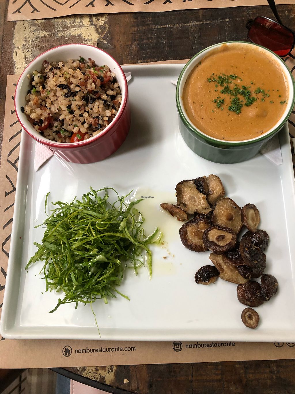 Estrogonofe de cogumelos com creme de castanha de caju, arroz com vari…