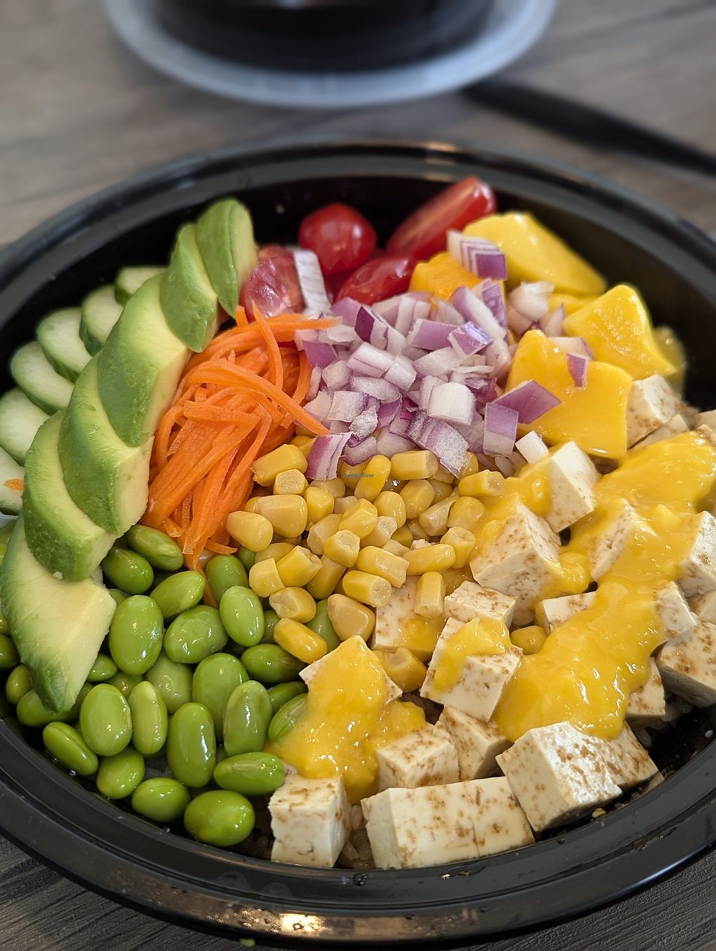 We dined to try their vegan chef challenge dishes, but will definitely be back in the future! Tofu is the only vegan protein, but all the bases, but all the toppings, sauces (except those with mayo), and garnishes (except masago/fish eggs) are vegan. Of the house specialty bowls, there is a vegetarian bowl that is vegan.