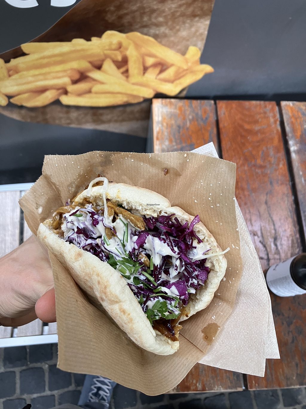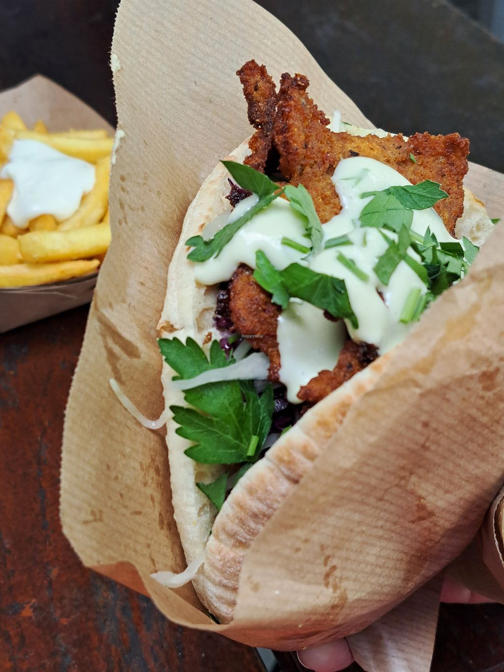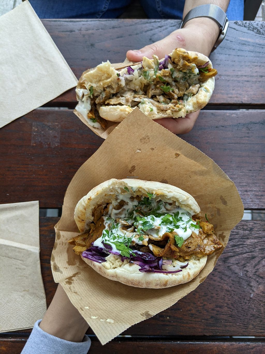 We tried the Schnitzel sandwich and a Shawarma sandwich both with Frie…