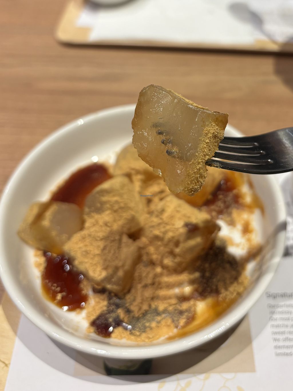 A few vegan drink options here (soy milk) but just came for a yummy snack. The Kinako warabimochi is vegan, however was told the matcha Warabimochi isn’t.