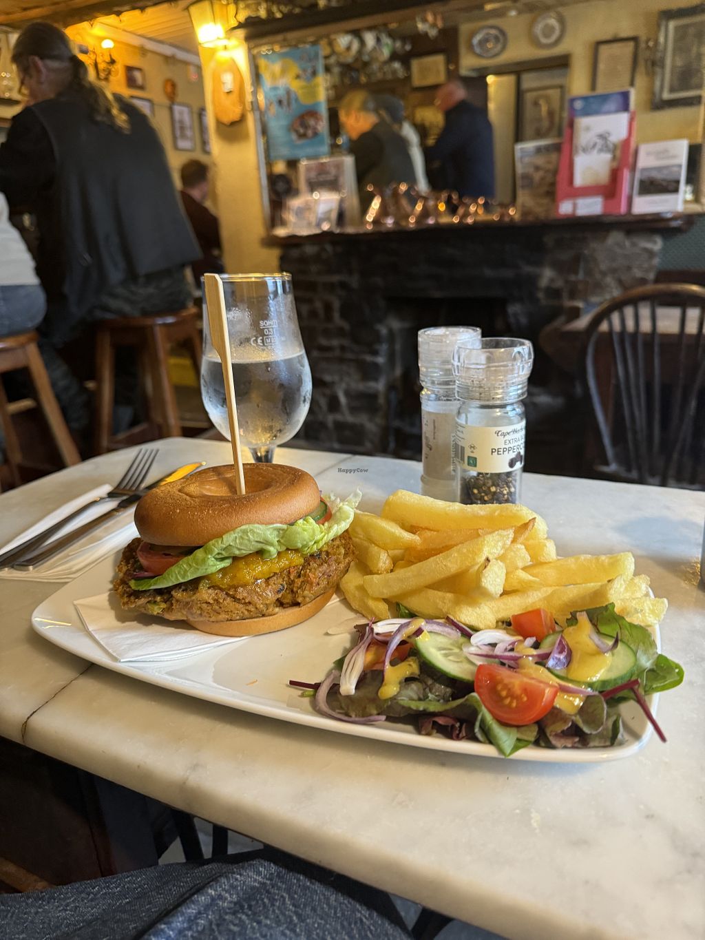 A few good vegan options. The burger was good. Lovely pub but gets super busy. You can’t book a table but let them know at the bar you want to order food and at busy times they have a system for seating people who are eating.