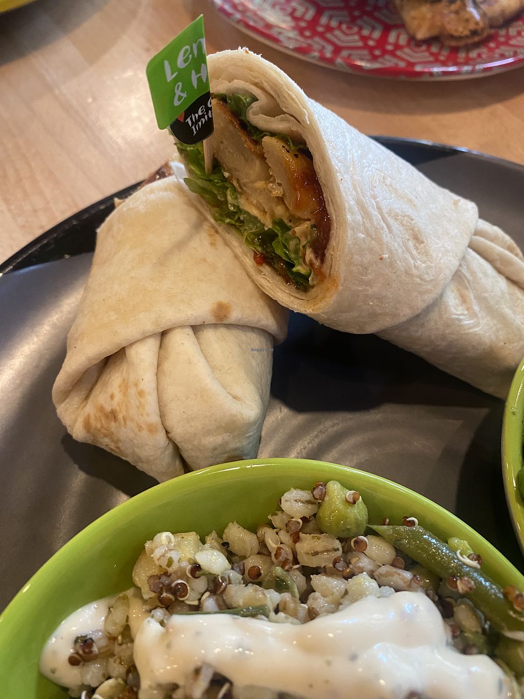 The big imitator wrap, green & grains and macho peas